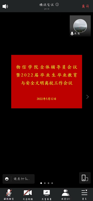 5月12日下午,我院以线上会议的形式召开了辅导员工作会议暨2022届毕业生毕业教育与安全文明离校工作会议,院党委副书记颜志刚出席会议,全体辅导员参加了会议。会议由院党委副书记颜志刚主持。